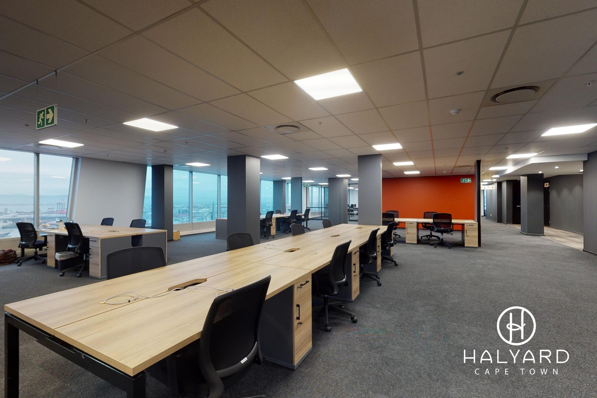 Open Plan Office – The office’s sleek design suggests a focus on functionality and comfort, making it conducive to productivity. The open-plan office workspace is filled with natural light, thanks to large windows that offer a view outside.